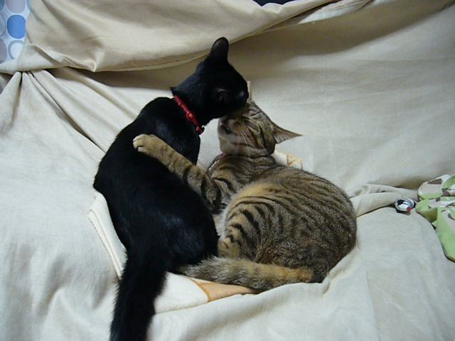 片や完全ノラ、片や猫嫌いと言われていた2匹も