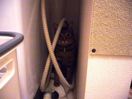 毎晩私が歯を磨いていると、必ずと言っていいほどココに隠れます。