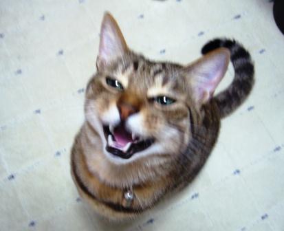 いつも右手にシーバ、ニャンコズは左前足でお手をするんですが、左手にシーバを持ってやると、戸惑いながらいつも通りに左前足を出してきます。