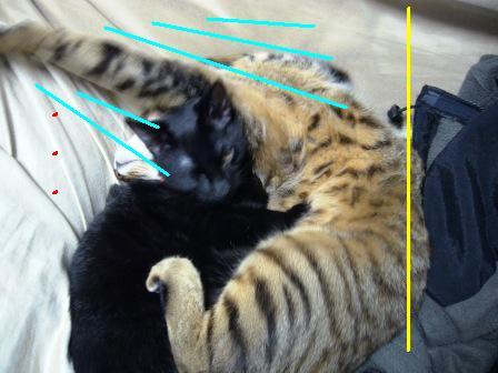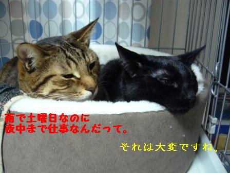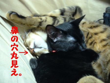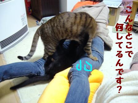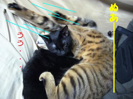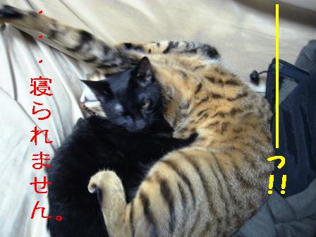 朝方になって人の足の上で寝るのはやめてくださいよ~も~。