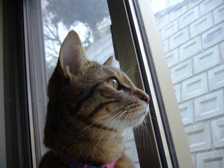 まぐろちゃんは無関心なんですが、アリスさんは外を見るのが大好きです。