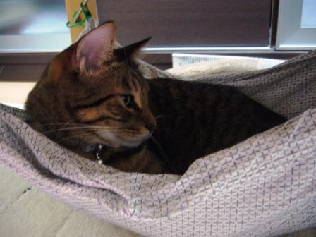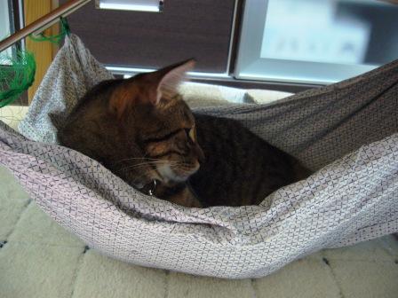 実際ニャンコが入ると、下についちゃってちっともハンモックじゃないんですけどw