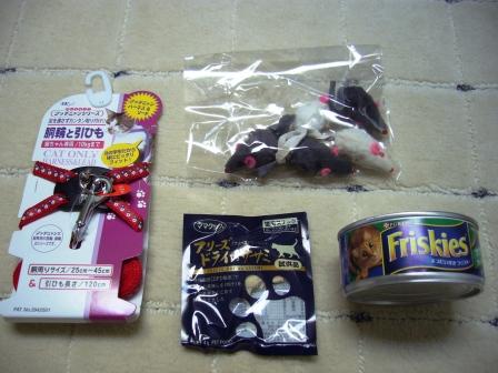 リード、ネズミ(5匹)、おやつ、缶詰