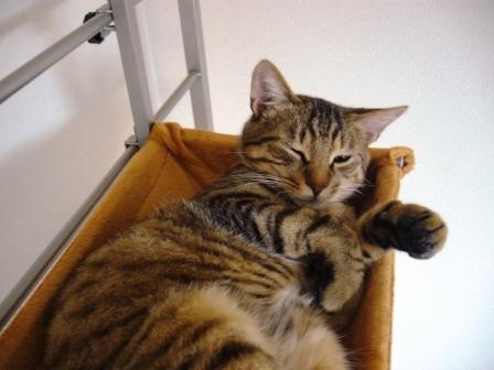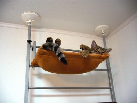 ハンモックで寝てることが多いです。