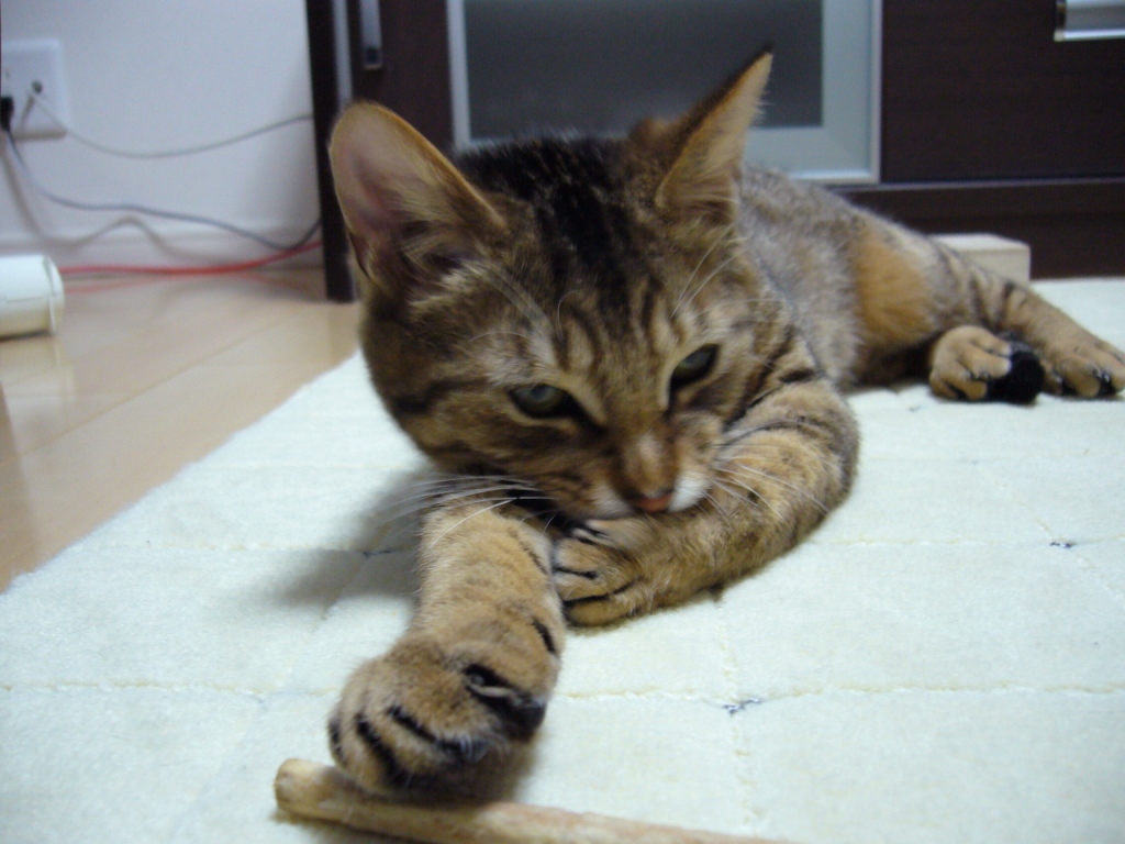 いいですけど・・・またたびの木がよだれでベッタベタのまま放置しないでいただきたいの・・・。